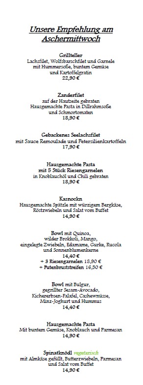 18.02.26 geöffnet! Aschermittwoch- Tageskarte
